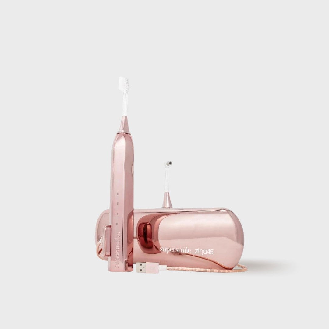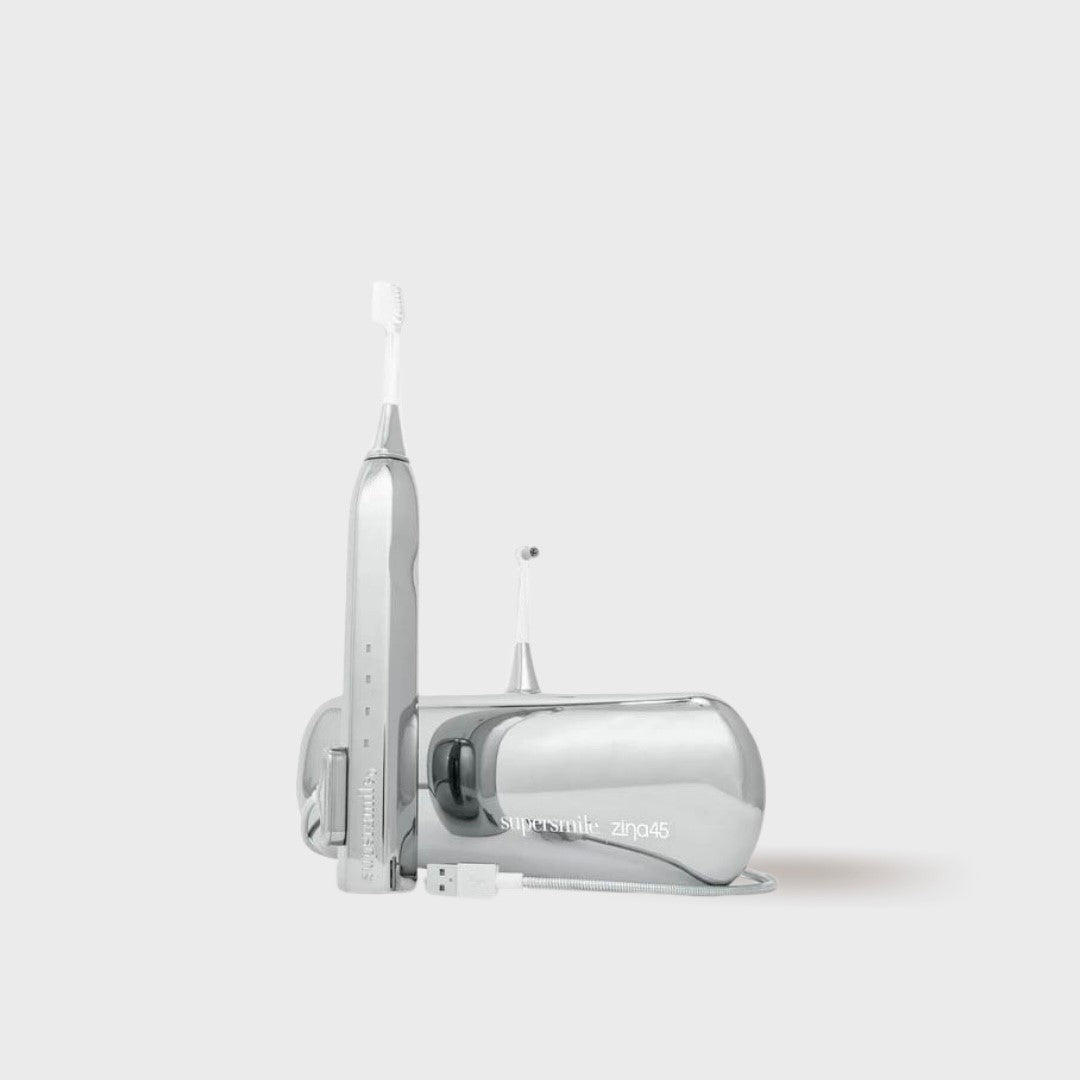 With its sleek and innovative design, the Zina45™ is truly the Tesla of toothbrushes. This is the ONLY toothbrush in the world with our exclusive polishing head that delivers a shine so bright, you'll need shades just to smile. Features our patented 45 degrees brush head and 4 unique cleaning modes to help you effectively clean above and below the gum line, preserving your oral (and overall!) health. Comes complete with a deluxe chrome travel case for easy, on-the-go access.