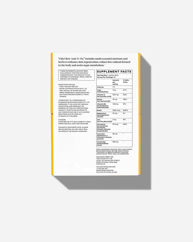 Anti-G-Ox Citrus is a daily antioxidant supplement that defends at a cellular level against three root causes of premature ageing. Inflammation, advanced glycation end products (AGEs) and oxidative stress. With a potent blend of actives, the formula enhances skin health, assists healthy sugar metabolism and reduces free radical damage caused by modern life.