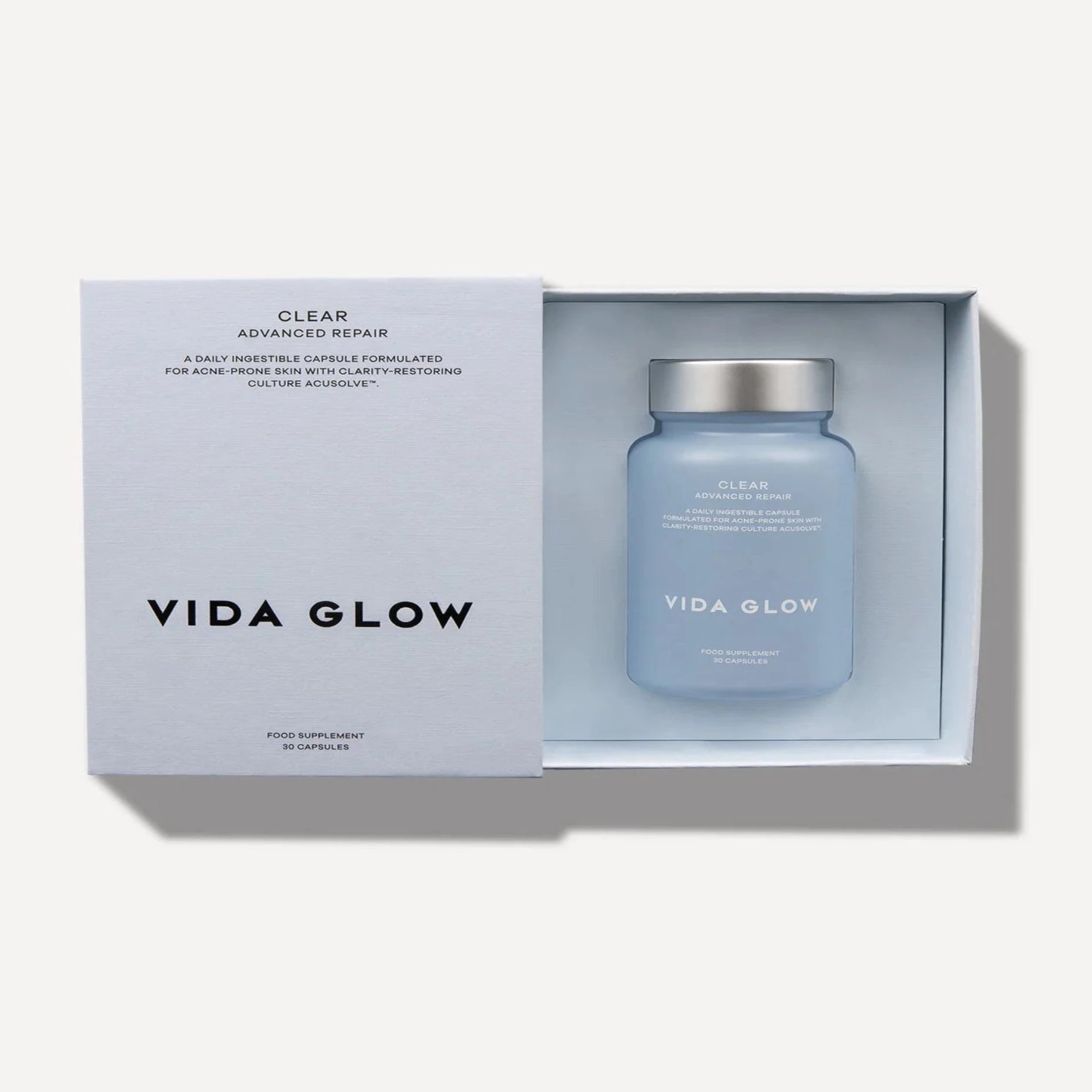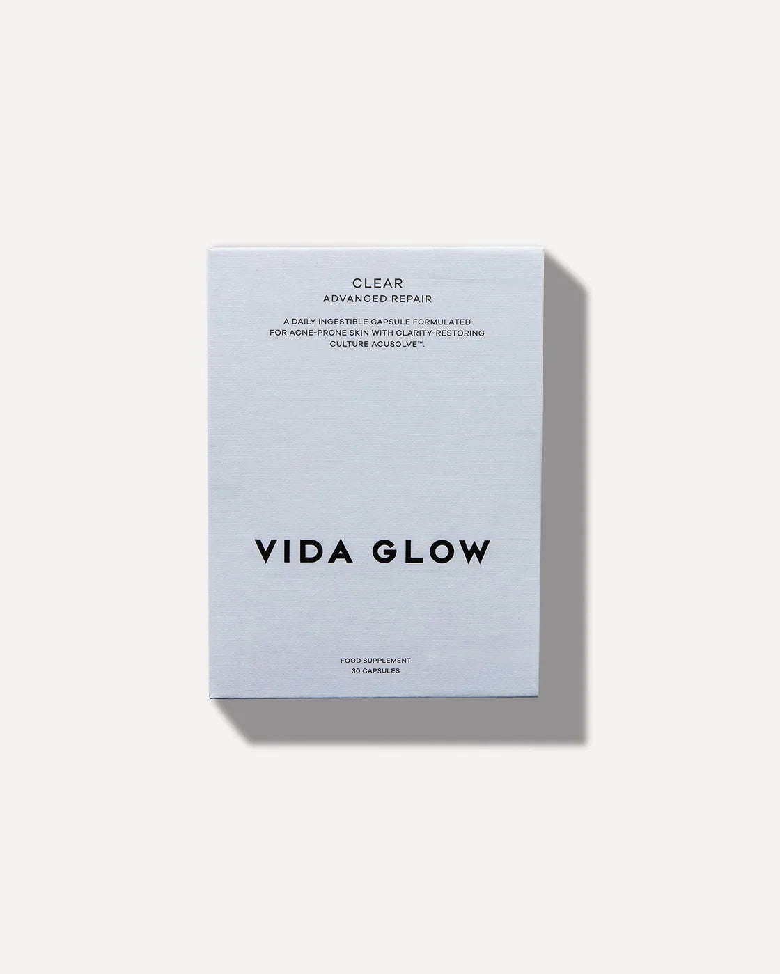 Clear is a once-daily ingestible capsule from Vida Glow’s Advanced Repair range. Acne, breakouts and pimples occur at any age. Yet hormones, diet, stress and lifestyle factors can compromise skin health and disrupt skin microbiome. Combatting the primary symptoms of acne, including pimples, blackheads, excess oil and skin inflammation, Clear systemically works to reduce breakouts, heal skin and restore clarity.