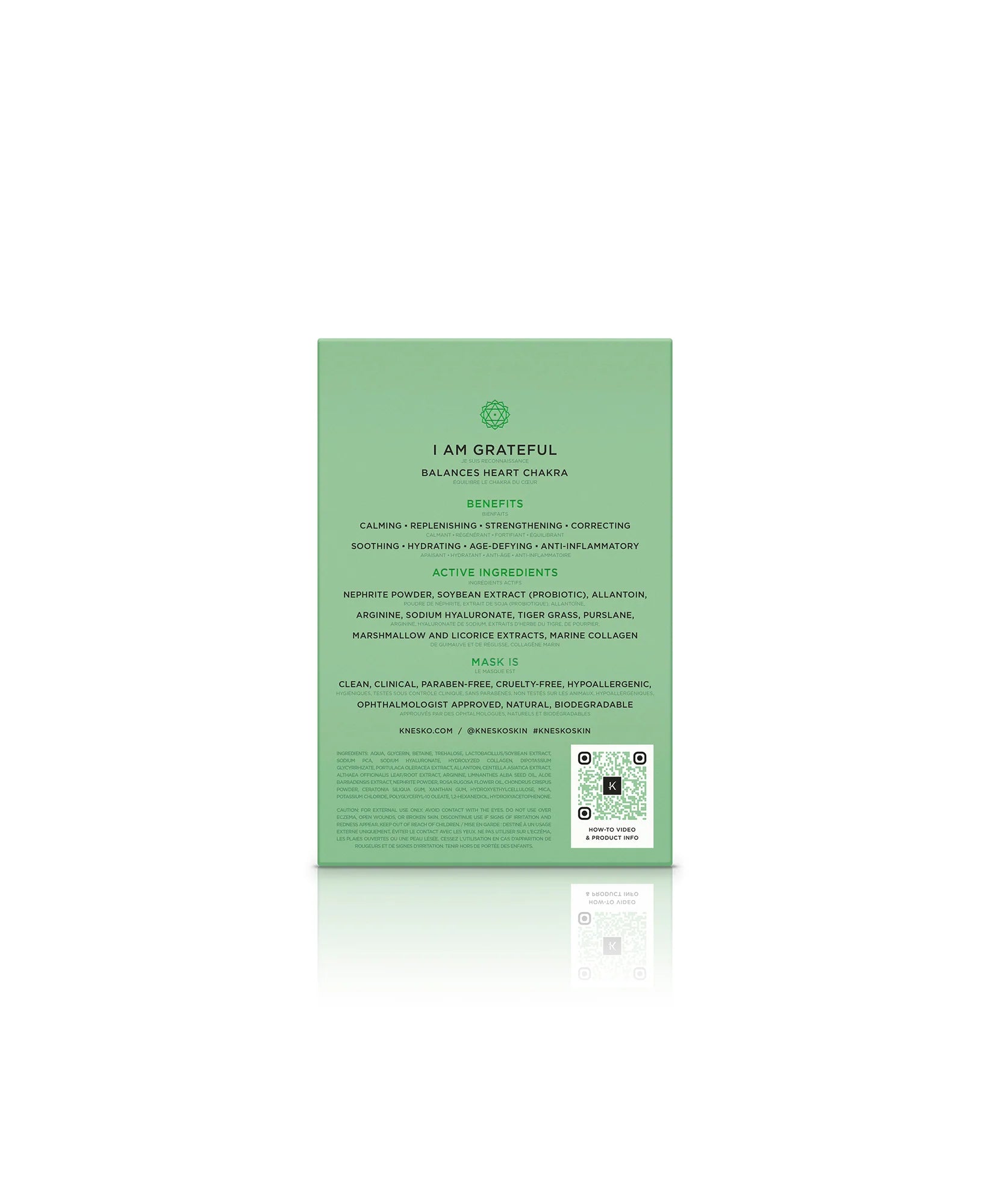 As the Green Jade crystal envelops your skin with its powers of good fortune, know that it’s supporting your Heart Chakra or Fourth Chakra, which is located at the center of your chest. Creating harmony within the Heart Chakra promotes an abundance mindset that allows you to recognize the riches contained within and around you. As you enjoy your masking experience, take deep, cleansing breaths, and repeat the mantra “I am Grateful” three times. Set an intention to recognize that everything you’re looking for can already be found within.